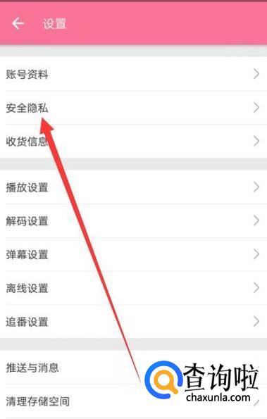进入之后,点击“安全隐私”,进入下一页面,如图所示。