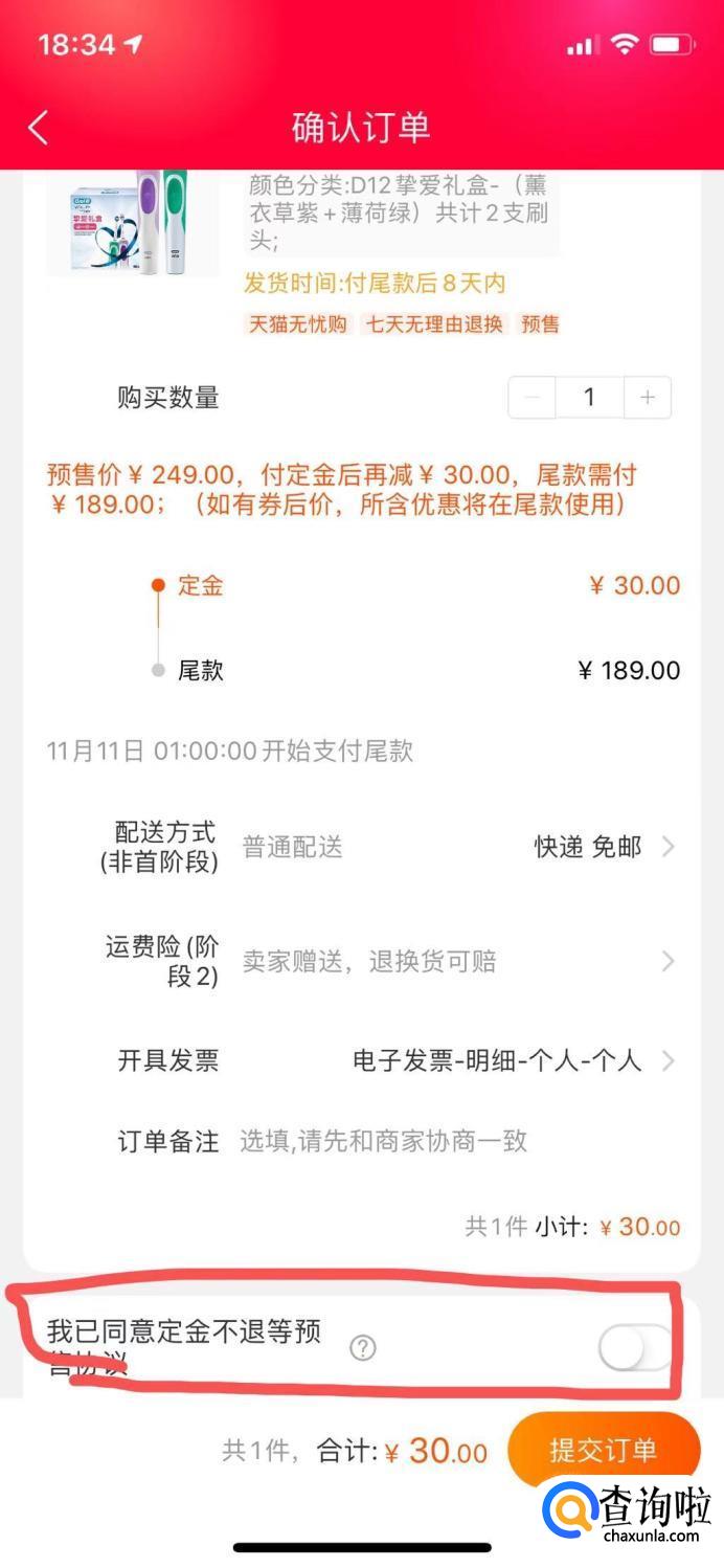 双11的定金没付款怎么退