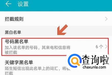 这样就跳转到了设置界面,列表中会有一项“号码黑名单”,这里显示黑名单的数量,进入到黑名单列表中长按某一个号码,然后勾选所有要移除的号码,然后一键“移除”就行了;