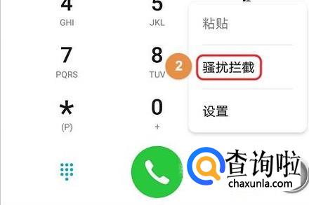 如果感觉一个个的移除太麻烦,那么在拨号界面点击右下角的三个点图标,然后在弹出的小窗口里点击“骚扰拦截”,然后在骚扰拦截的右上角点击设置图标;