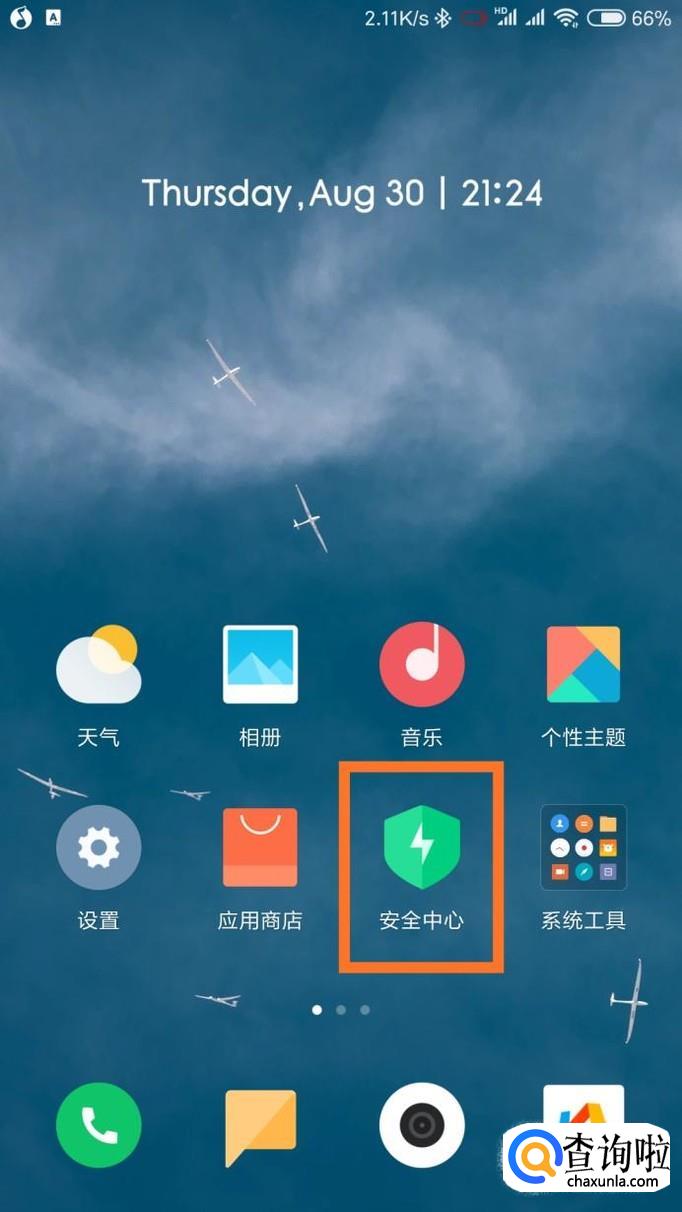 注意,稳定版的小伙伴的小米手机是没有root的哦!首先打开小米手机桌面的‘安全中心‘。