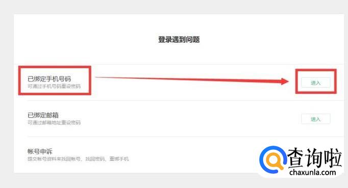 在“已绑定手机号码”的右侧,点击“进入”的端口,如图所示。