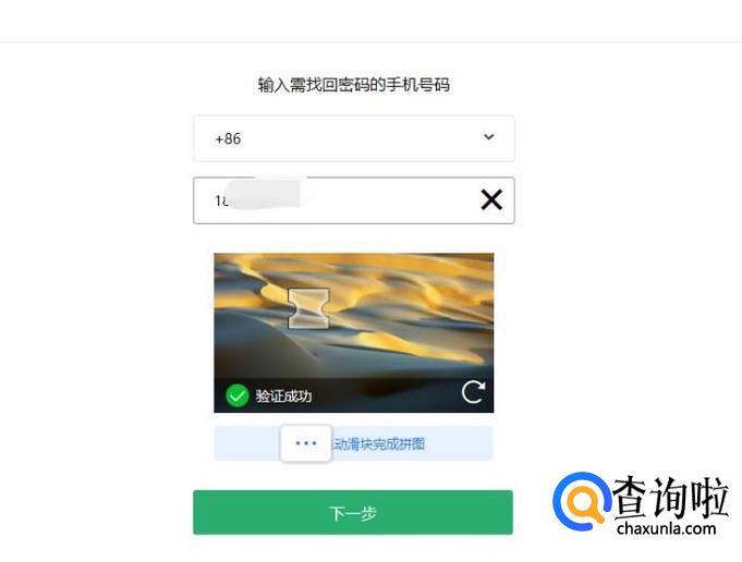 进入之后,输入上自己的手机号码,拼完拼图,点击下一步即可。