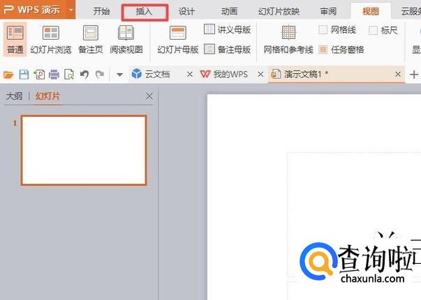 首先,我们打开我们电脑上面的wps演示,然后我们点击工具栏中的插入;