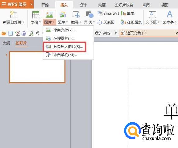 弹出的界面,我们点击分页插入图片;
