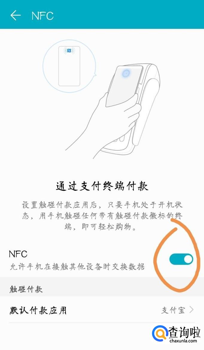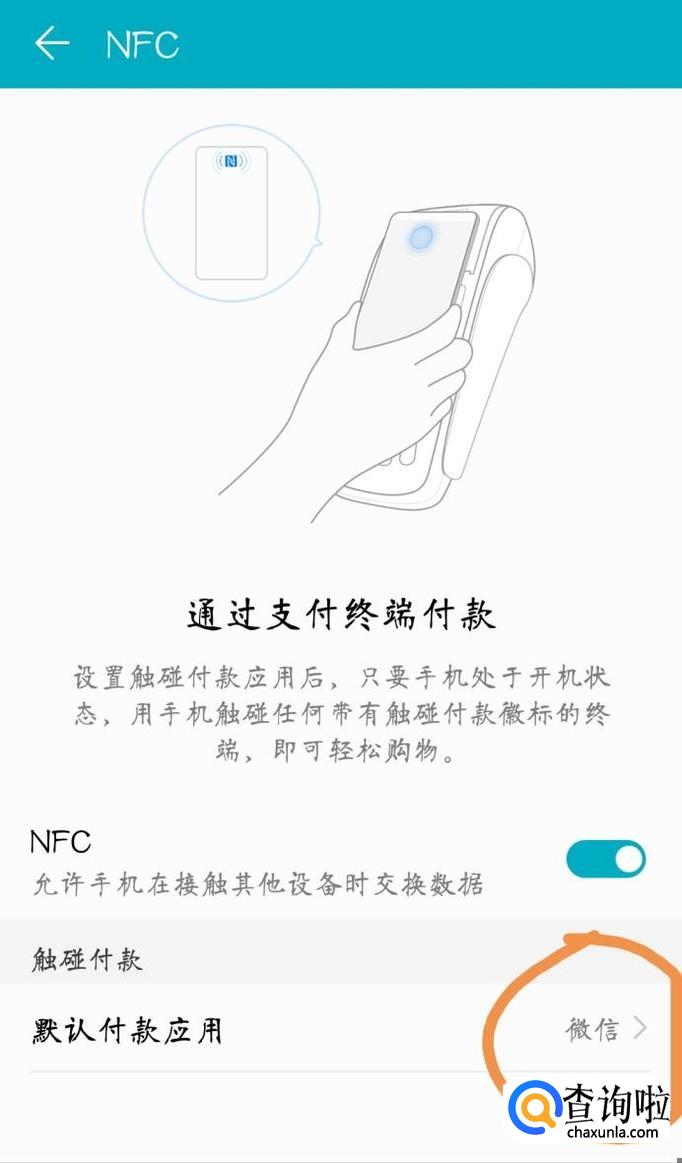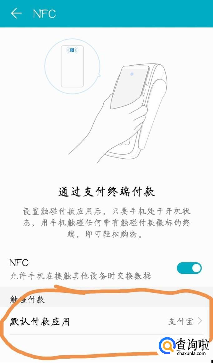 然后在开关的下方可以看到“默认付款应用”,点击进入