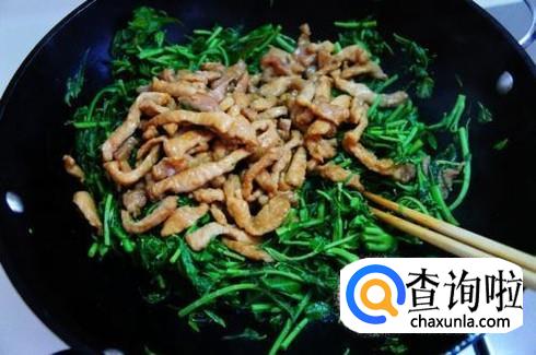 然后盛出放入盘子里,这样香椿炒肉就做好了