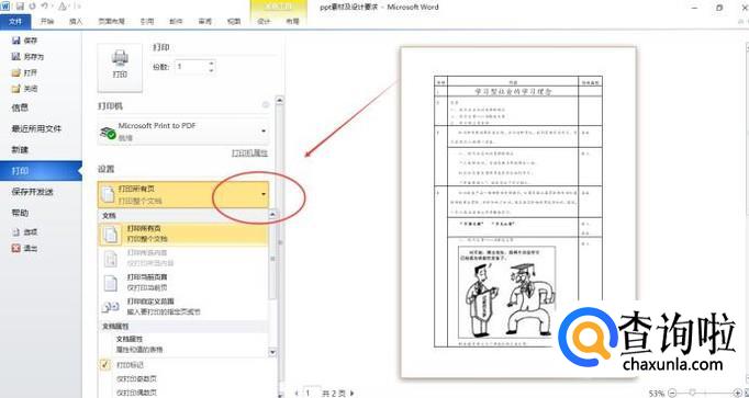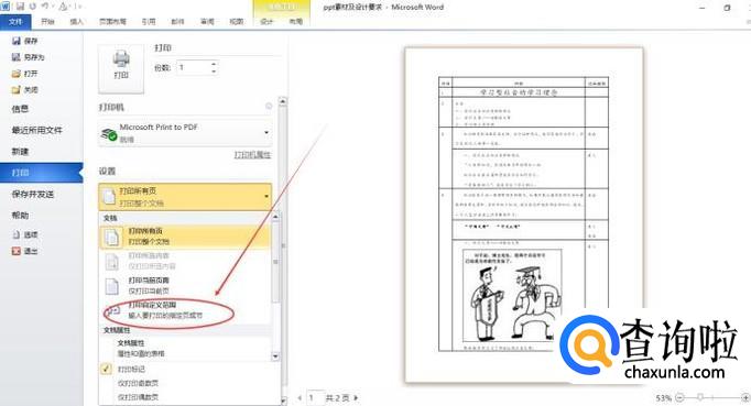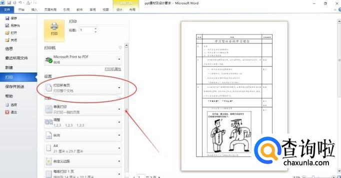 点击“设置”中的“打印所有页”,就可以将整个文档打印出来。