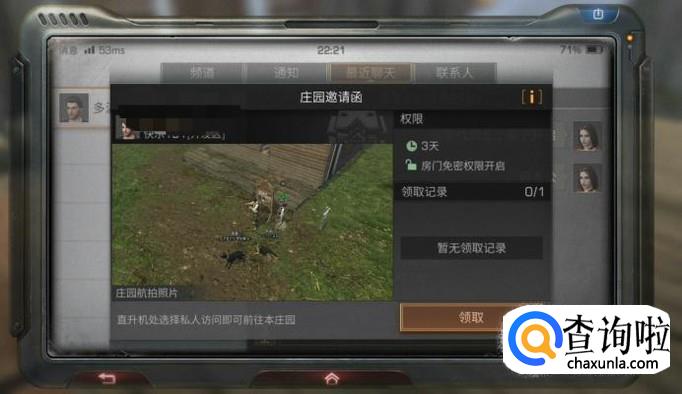 庄园邀请卡需要在一个小时内领取,如果一个小时内没有领取,就会失效,就只能由好友重新发了,领取成功之后,就可以去好友家了。