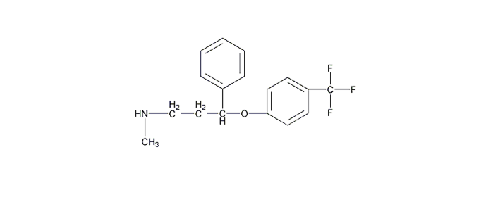 氟西汀(Fluoxetine),为临床广泛应用的选择性5-HT再摄取抑制剂(SSRI),可选择性地抑制5-HT转运体,阻断突触前膜对5-HT的再摄取,延长和增加5-HT的作用,从而产生抗抑郁作用。对肾上腺素能、组胺能、胆碱能受体的亲和力低,作用较弱,因而产生的不良反应少。口服后吸收良好,生物利用度70%,易通过血脑屏障,另有少量可分泌入乳汁。在肝脏经CYP2D6代谢,生成甲氟西汀,亦有抗抑郁作用。