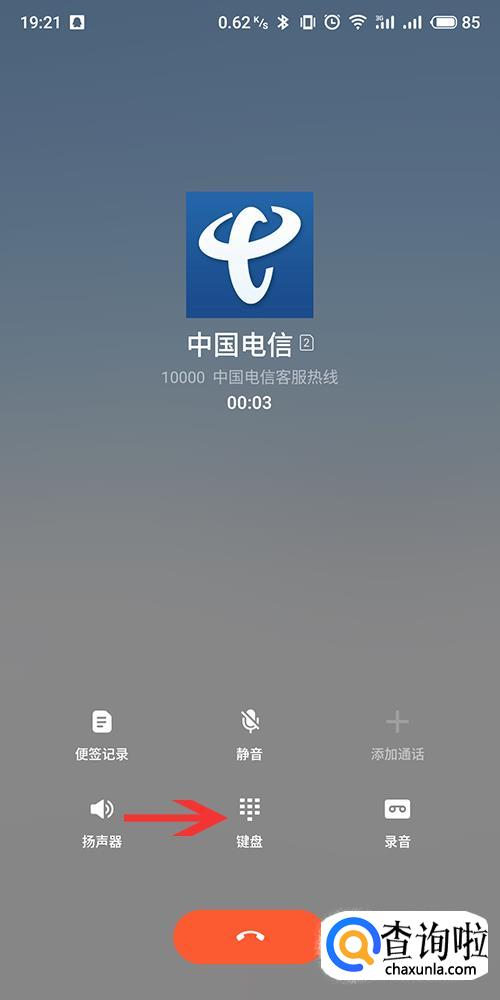 进入拨号界面,接通之后会有语音提示,这个时候打开手机自带的“键盘”,根据语音提示进行相应的操作。