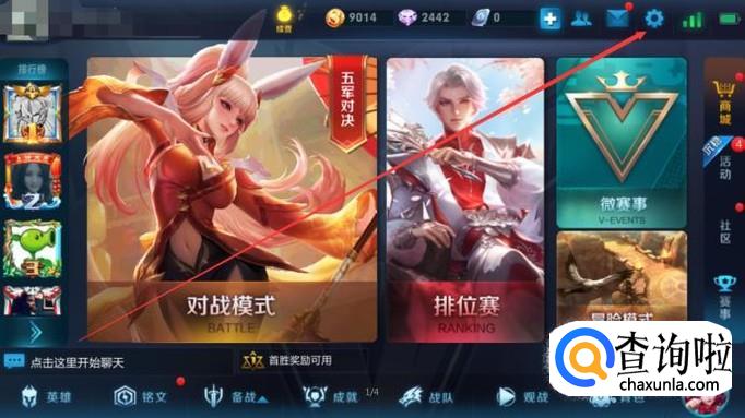 打开王者荣耀,登录账号信息,选择右上角设置按钮;
