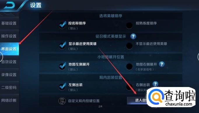 打开界面设置,这个功能区域里有自定义局内按键位置,进入自定义面板;
