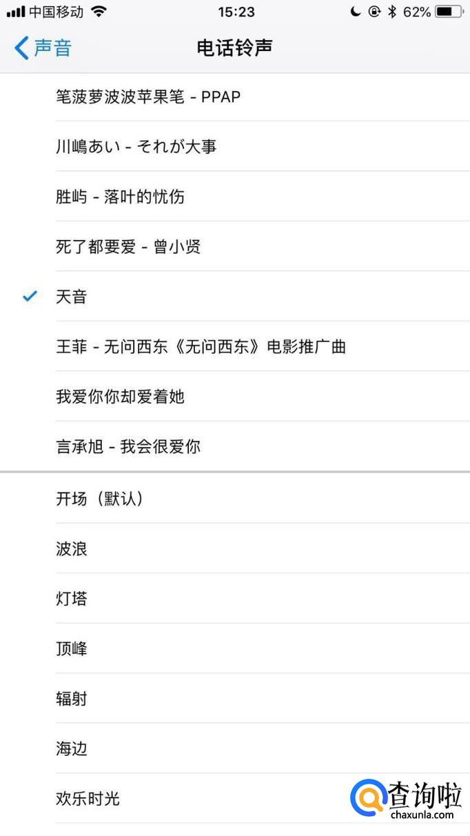 最后选择我们想要的铃声就可以了,你学会了吗?赶快动手试一试吧。