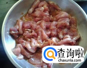 猪肉洗净切片,加酱油,料酒,盐,淀粉少许,搅匀,腌制几分钟。