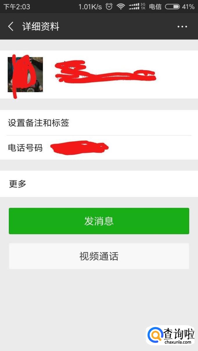 在通讯录一栏中,找到你要发视频的好友,进入好友的信息页面,点击发消息。