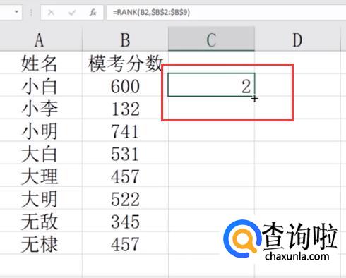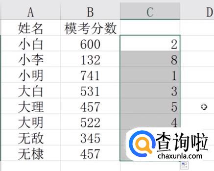 然后你就可以看到使用rank函数进行的数据排名啦,是不是很简单呢?