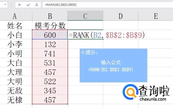 如何在EXCEL中使用RANK函数进行排名?