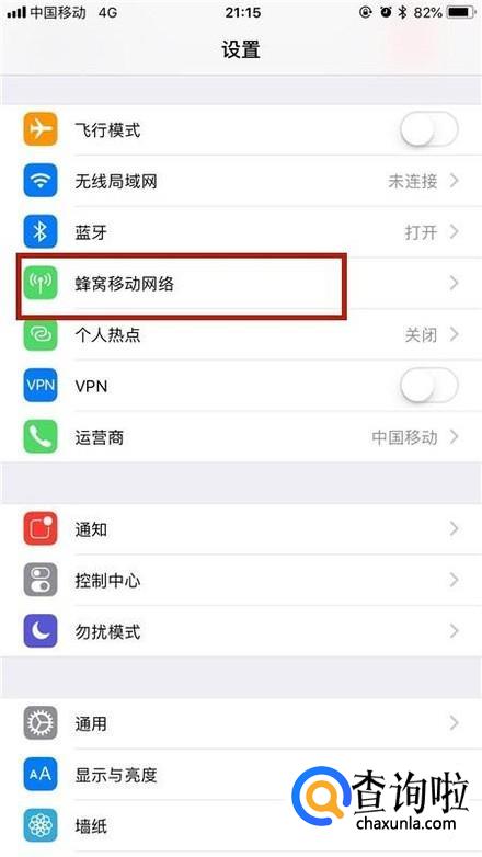 然后点击蜂窝移动网络,如下图所示。