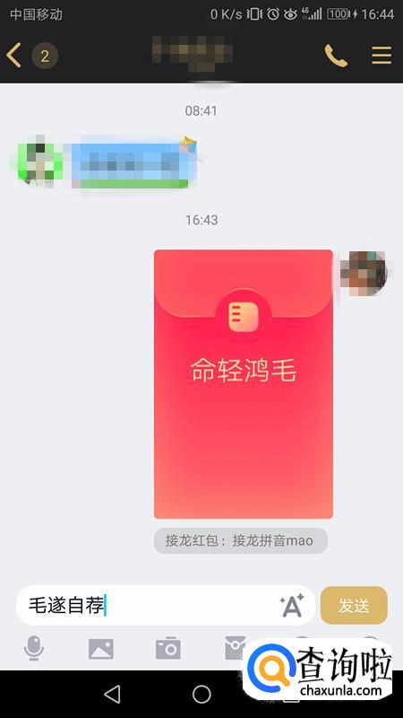 好友在收到红包之后就可以根据红包下面提示的接龙拼音输入一个成语。