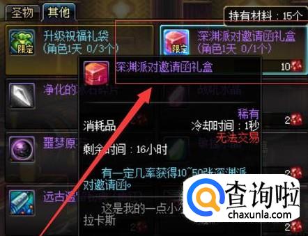 每日任务奖励的红玉髓,在卡拉卡斯那里,换深渊派对邀请函礼盒。可以随机开出10到50张深渊邀请函。大多数都是开出15张邀请函。