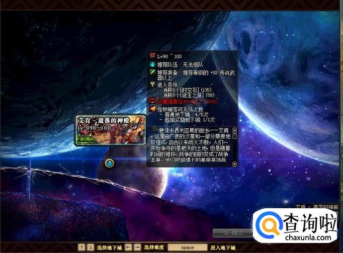 艾肯副本:艾肯地下城的奖励也非常丰厚,有特定的90级传说装备,除了武器之外,其它都是套装。但是该地下城只会掉落专属的材料和传说装备。每天6次艾肯,一共48点疲劳。能打到40个‘鬼影的破碎之角’,可以换2张深渊派对通行证。也就是56张深渊票。