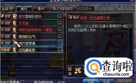 巨龙每日任务:组队通关素喃巨龙盘踞之地,只需消耗8点疲劳,就可以获得一张深渊派对通行证。相当于28张深渊票。