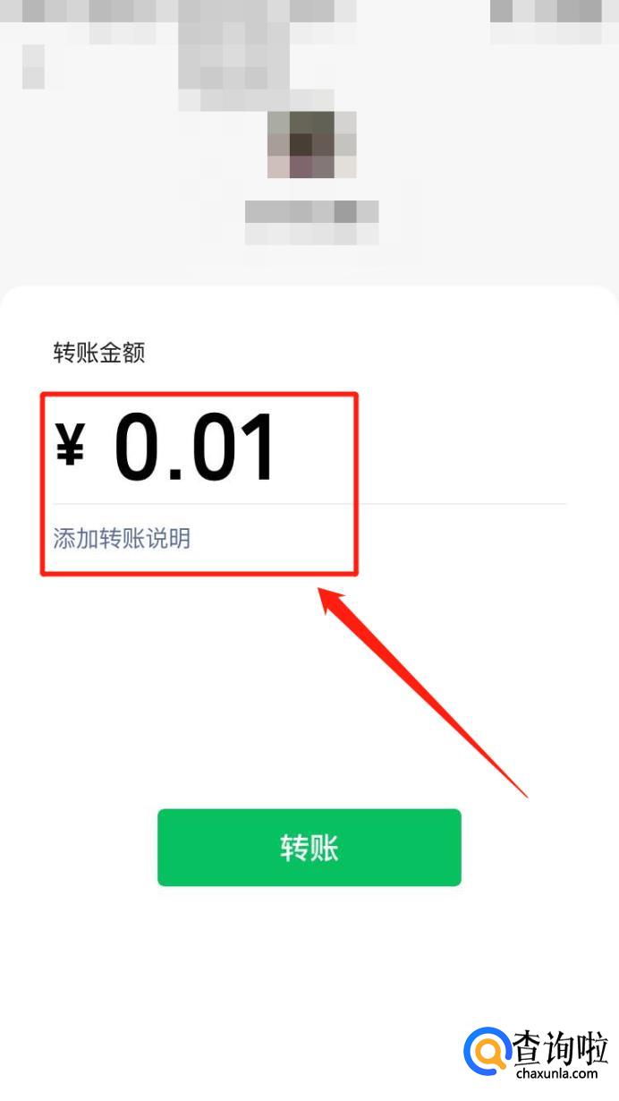 点击两人的对话对话框,找到转账,给对方转账0.01元。数目只是为了测试他是否收到,所以不用太多。