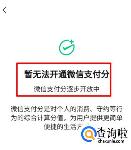 目前微信支付分在逐步开放中,部分用户可能暂时无法开通。如果出现这个提示,可以过段时间再次尝试。