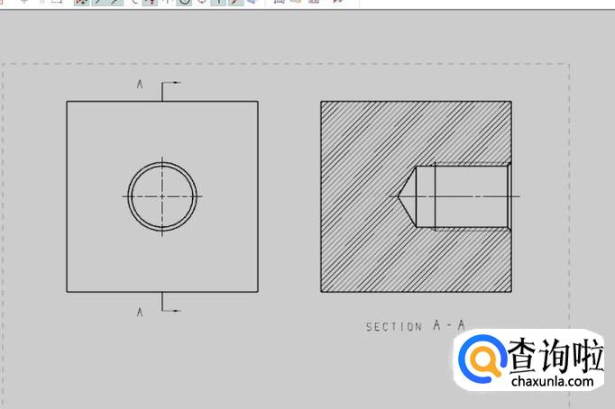 如下图所示,这是换成制图模块,螺纹孔特征就很明显的看出来了。