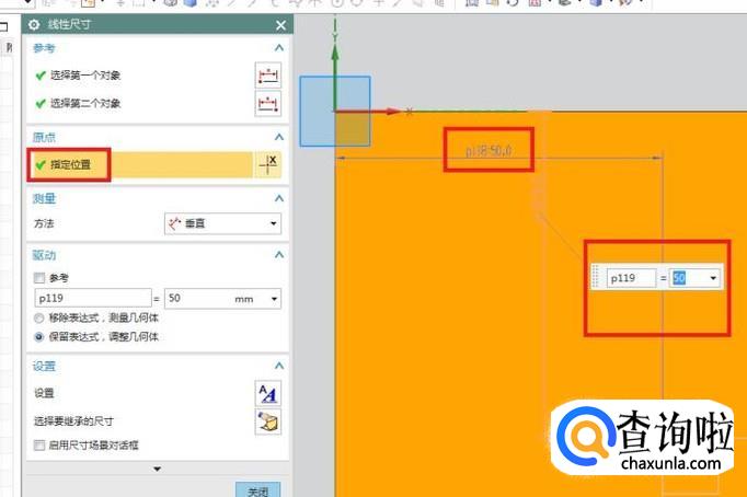 如下图所示,笔者将两个尺寸都改成了50,这样一来,点就在正方体上边的正中间。