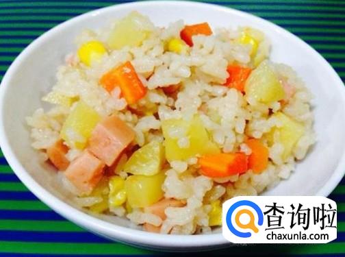 最后直接在小火上面煮上几分钟,这个时候就能加上米饭然后搅拌均匀,并且加上食盐再煮上几分钟就能加上腊肠和洋葱等,美味的土豆南瓜腊肠饭就做好了。