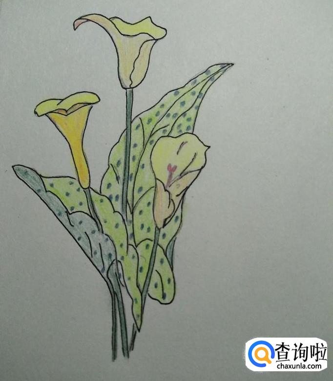 接下来就是涂色部分了,我们将花杆和叶柄涂成深绿色,叶子涂成浅绿色,花朵涂成黄色。
