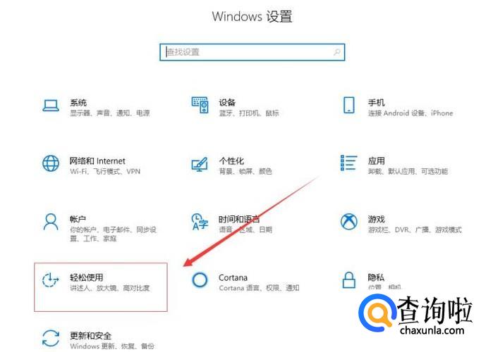 小编的电脑是windows10系统的。首先我们需要找到windows10里面的设置页面。在设置页面,我们找到轻松使用并点击。