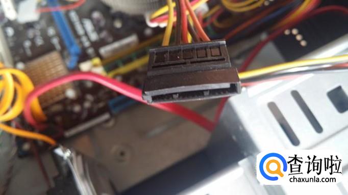 这种扁平插头是给SATA接口的设备供电的,把其中一个SATA插头插到硬盘接口上,图中黄色数据线旁边的就是。光驱也是这种供电插头,插上即可。