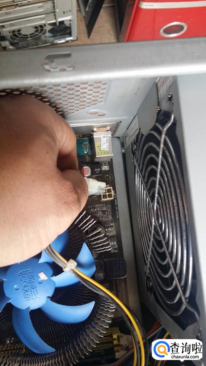 插上四口CPU供电插头,这两者把有塑料卡扣对上。