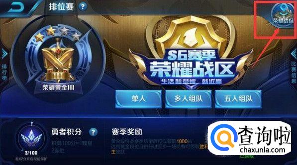 接下里,点击右上角的“荣耀战区”。
