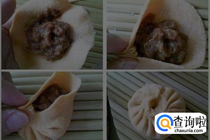 将面坨捏成饼状,然后按下图所示的方式包包子。