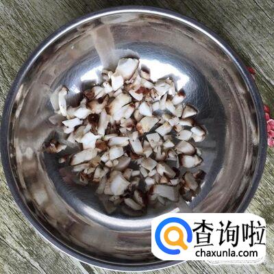取两个鲜香菇,将鲜香菇洗净,切成丁状;