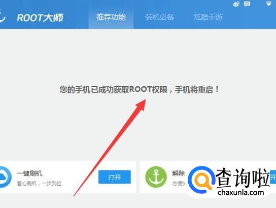几分钟之后,系统就会提示手机root成功,如图所示。