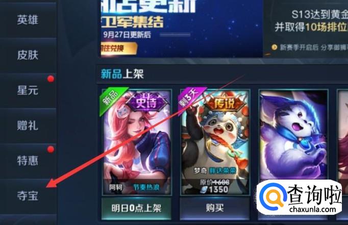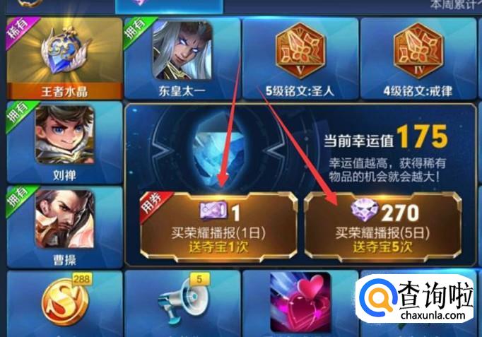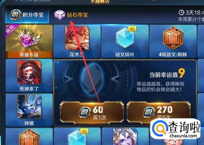 点击图示位置即可进行夺宝,夺宝会出现永久英雄,铭文碎片,钻石,还有铭文等。