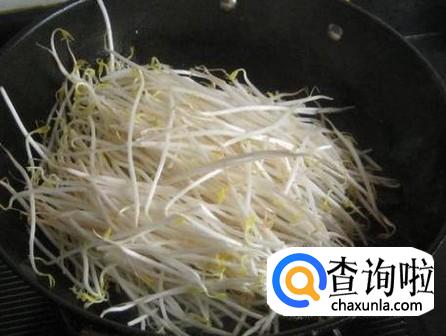 然后绿豆芽下锅,加适量的盐大火翻炒2分钟左右。【绿豆芽不要炒得太熟,太熟就不脆口】