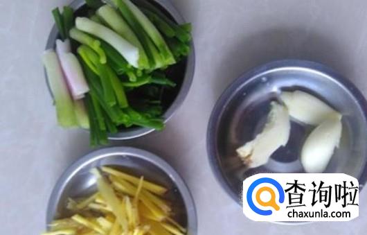 首先把绿豆芽用水泡洗干净,捞上篮子沥干水份,蒜米、香葱、姜丝准备好。