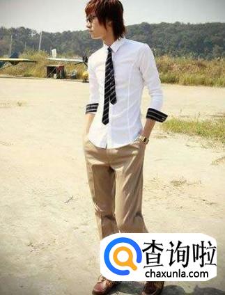 白衬衫搭配格子长裤,显得人非常年轻、俏皮,特别适合年龄小、性格外向的年轻人穿着,给人以可爱的感觉。