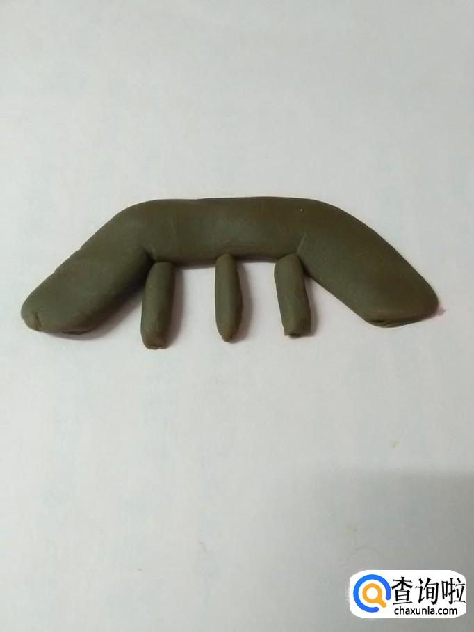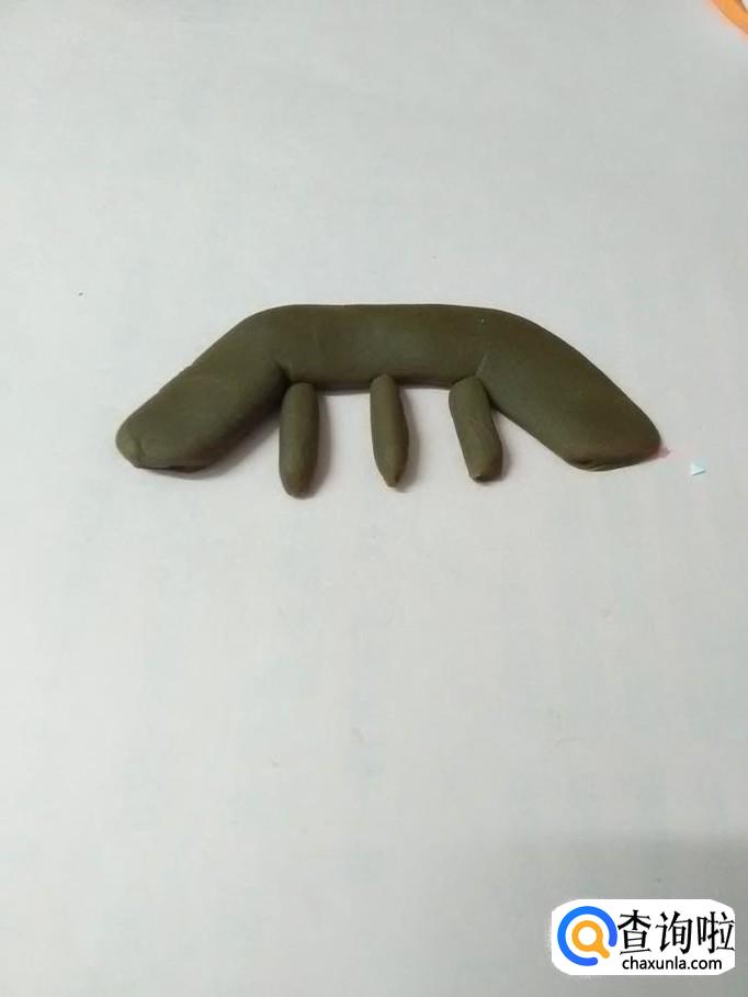 再取一块彩泥,也搓成长长的圆条。