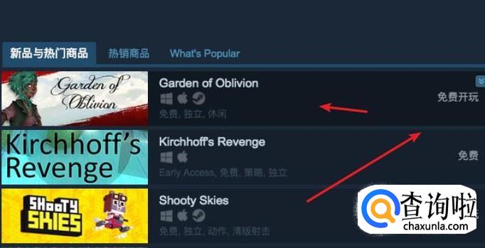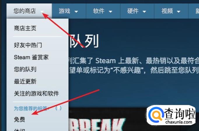 打开后,在‘你的商店’下的子菜单里,点击‘免费’