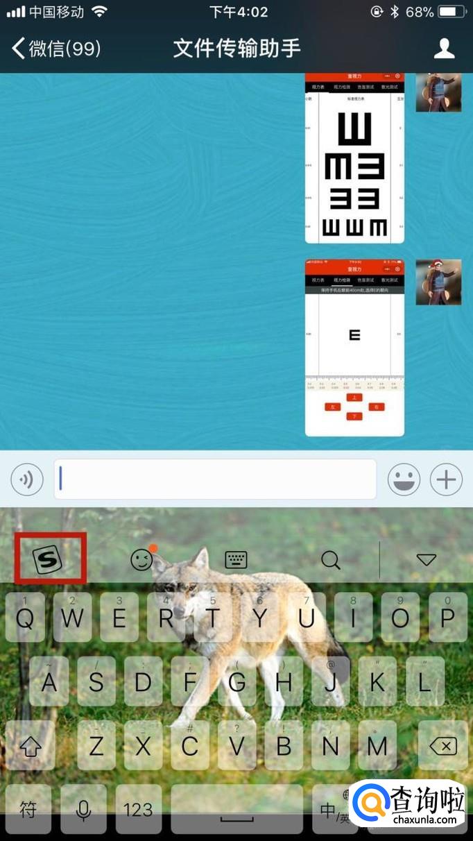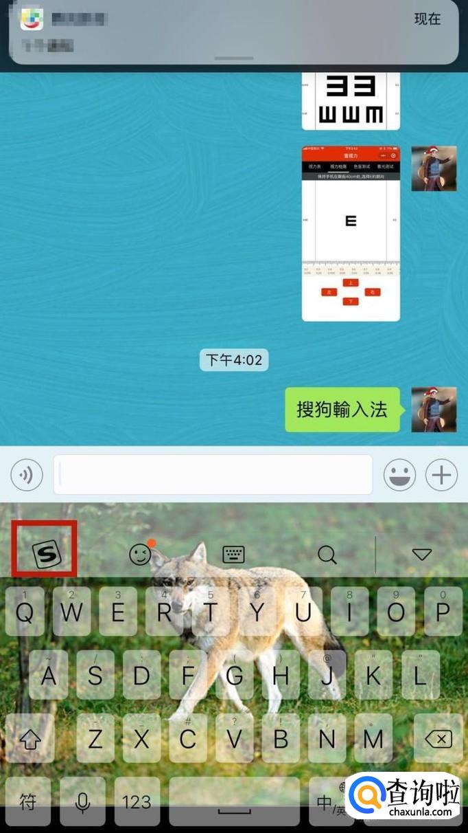 首先我们随便打开一个微信对话框并切换到搜狗输入法,如下图所示。