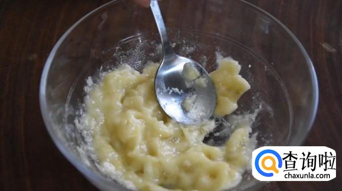 香蕉一根,白面两勺,鸡蛋一个,葱花,盐,鸡精