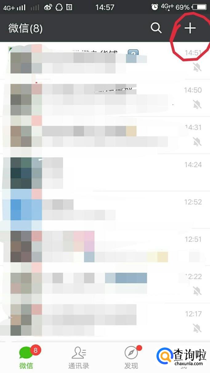进入聊天界面,点击右上角“+”