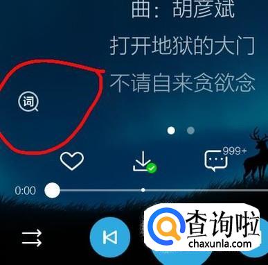 点击进入歌曲的播放页面,在页面之中找到并点击选择设置歌词的标志